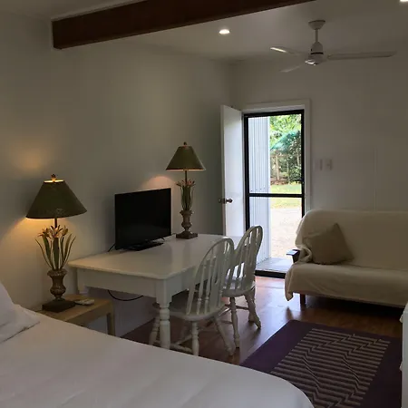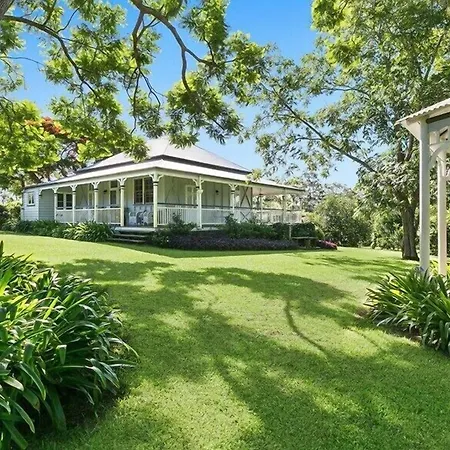 Goście mogą zanurzyć się w ciszy i spokoju ogrodu w Hotel Mango Hill Farm Peachester, który oferuje ruszt do barbeque.